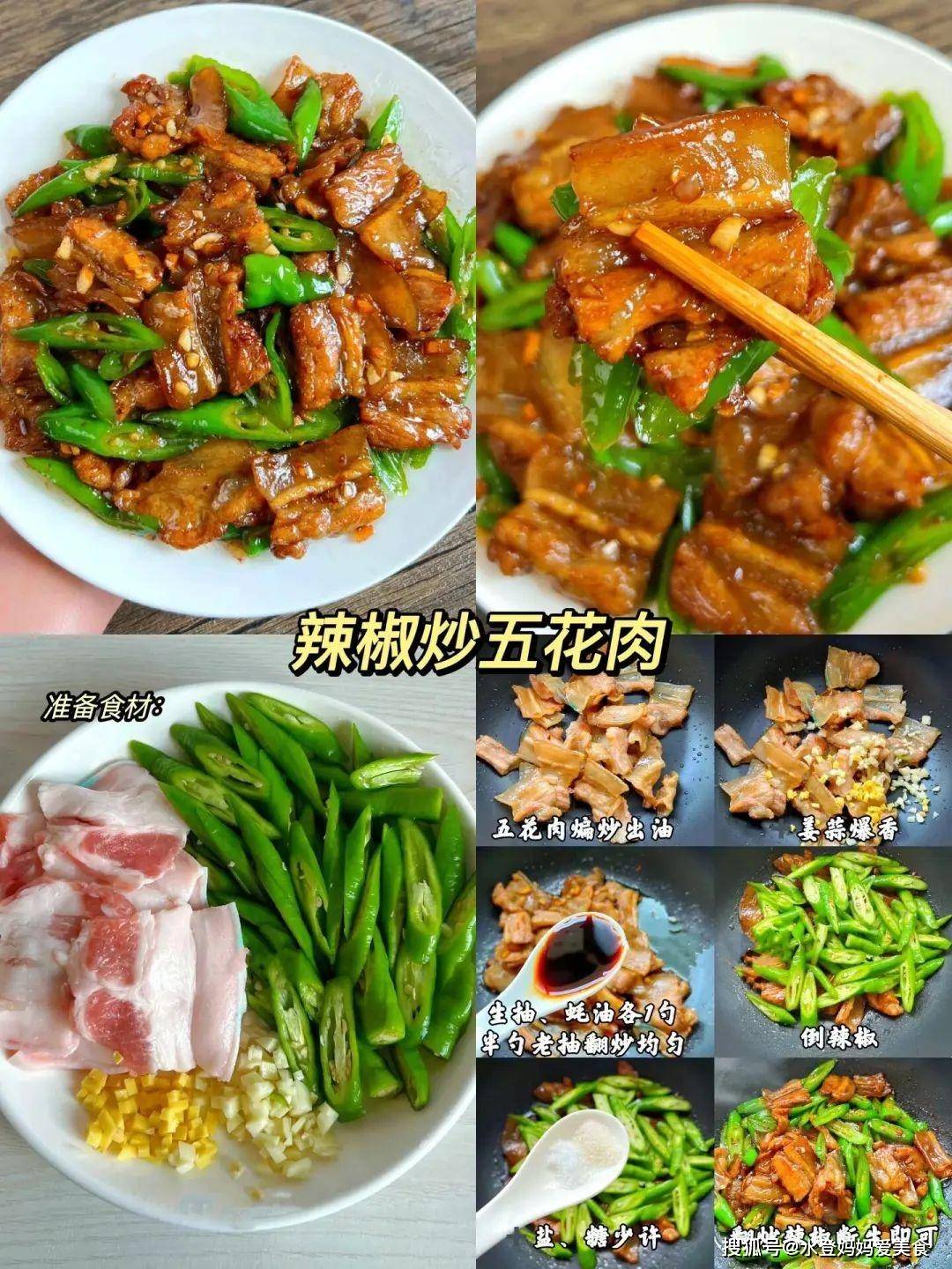 四、辣椒炒五花肉营养功效:青椒富含维生素C和抗氧化成分;五花肉提供必需脂肪酸及蛋白质,帮助维持细胞健康。 食材:五花肉、青椒、蒜末、生抽、蚝油、老抽、盐、糖 做法: