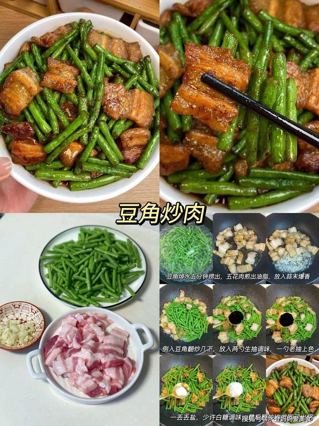 三、豆角炒肉营养功效:豆角提供植物蛋白和膳食纤维,促进肠道蠕动;五花肉含优质动物蛋白及B族维生素,满足能量需求。 食材:豆角、五花肉、蒜末、生抽、老抽、盐、白糖 做法: